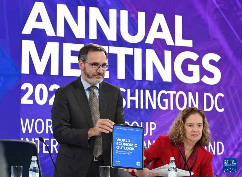 新华社纽约10月14日电(记者徐静熊茂玲)国际货币基金组织(IMF)14日发布最新《世界经济展望报告》,小幅上调今年世界经济增长预期。 IMF指出,关税影响进一步削弱了全球经济增长前景,世界经济仍相对脆弱。 10月14日,美国华盛顿,国际货币基金组织首席经济学家皮埃尔·奥利维尔·古兰查(左)在世界经济展望报告发布会上发表报告。新华社记者 李睿 摄 报告预测2025年世界经济将增长3.2%,比今年7月的预测提高0.2个百分点; 2026 年将增长 3.1%,与 7 月份的预测相同。 IMF强调,上调是由于进口商因美国关税政策而向前推进等原因。各国和大多数国家为维护全球贸易体系开放和稳定所做的努力。目前,关税的影响进一步削弱了全球经济增长前景。高度的贸易不确定性、不断增加的保护主义措施、持续的地缘政治紧张局势以及不断增加的财政脆弱性都预示着世界经济面临的风险。报告将新兴市场和发展中经济体今年经济增速较7月预测上调0.1个百分点至4.2%,同时还将发达经济体今年经济增速上调0.1个百分点至1.6%。国际货币基金组织指出,美国经济出现严重放缓迹象。美国7月以来就业数据不及预期,8月新增就业岗位大幅下降,失业率升至近四年来新高。国际货币基金组织表示,各经济体应努力确保债务可持续性,消除贸易政策的不确定性加强合作,减少贸易和投资壁垒。 10月14日,美国华盛顿,国际货币基金组织首席经济学家皮埃尔·奥利维尔·古林查在世界经济展望报告发布会上发表讲话。新华社记者 李锐 摄 10月14日,美国华盛顿,国际货币基金组织首席经济学家皮埃尔-奥利维耶·古林查(中)在《世界经济展望》新闻发布会上发言看报道。新华社记者 李锐 摄 10月14日,美国华盛顿,国际货币基金组织首席经济学家皮埃尔-奥利维尔·古林查(左二)在世界经济展望报告发布会上发言。新华社记者 李锐 摄 10月14日,美国华盛顿,国际货币基金组织首席经济学家皮埃尔-奥利维尔·古林查(左二)在世界经济展望报告发布会上发言会议。新华社记者 李锐 摄